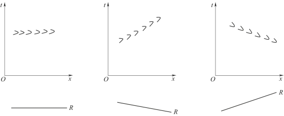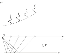 对单次反射波时距曲线来说,当地下反射界面水平时,时距曲线是一条对称的双曲线;当地下反射界面倾斜时,时距曲线是一条极小点向上倾方向偏移的双曲线(图7-15)。一般情况下,根据时距曲线族的形状可以大致了解地下各反射界面的形态,把由于在地面接收点偏离炮点所引起的时差消除掉,即把每个接收点都看成是自激自收的,这样,时距曲线便成了一条直线,它就能直接反映地下反射界面的产状了(图7-16)。消除由于接收点偏离炮点所引起的时差,这个过程就叫作动校正或时差校正。