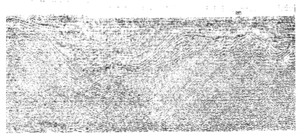 (4)反射波同相轴零乱,前后产状突变或出现资料空白带,这些也是断层的反映。上述现象是由于断层错动,地层两侧产状发生突变,以及断面的屏蔽作用和对射线的畸变作用所造成。