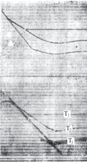 超覆和退覆出现在盆地边缘和斜坡带。超覆是海平面相对上升时,新地层的沉积范围扩大,依次超越下面较老地层的覆盖范围。退覆则是海平面相对(迅速)下降时,新地层的沉积范围缩小,依次小于下面较老地层的覆盖范围。所以,超覆和退覆是角度不整合的一种特殊形式。时间剖面上它们的基本特点相同,都是几组互不平行的反射波逐渐靠拢,和地层尖灭点的绕射波相切而连接在一起。所不同的是超覆时,不整合面以上的反射波依次被不整合面的反射波所代替(图7-41);而退覆吋,在不整合面以上的地层中,较新地层的反射波依次被下伏较老地层的反射波所代替,如图7-42所示图中T2层代替了T1层,T3层又代替了T2层。