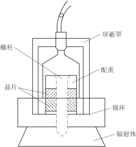 喇叭式换能器的结构如图8-2所示,主要由晶片、辐射体及配重三部分组成。用粘接剂将这三部分粘合,并用螺栓旋紧,使其能承受较大的功率。晶片为圆形,由压电陶瓷制成,其前端的辐射体为喇叭形的铝合金硬盖板,可以使压电陶瓷受激振动后所产生的声波向岩体单向发射。喇叭式换能器具有单向辐射性能,指向性能较好,机械强度高,还能承受较大功率,因此多用作发射换能器。