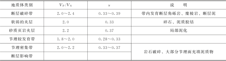 4.裂隙、松散岩体之纵横波速比特征值