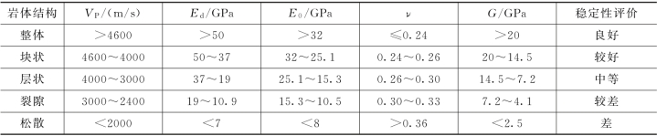 工程岩体结构评价的目的是定性评价其稳定性,利用系列弹性参数评价岩体结构,见表8-6。