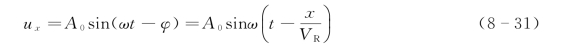 如果在同一时刻t观测到单频波在两个检波器处的相位差Δφ,则根据位移表达式(8-28)有