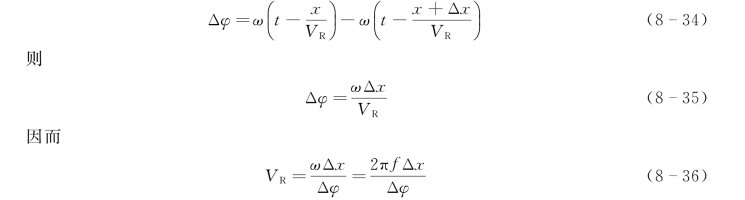 式(8-36)表明,可以用距离Δx的两个检波器记录波形的相位差Δφ,从而获得介质的面波速度的变化特征。