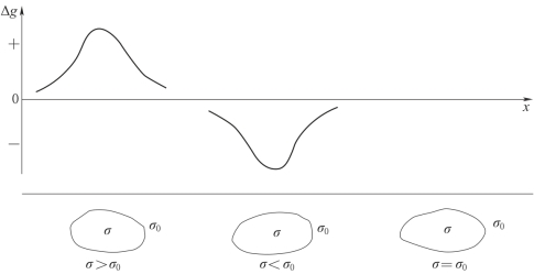 (2)岩体密度不仅上、下层之间有明显的差异(>0.2g/cm3),而且沿水平方向也要有密度变化,这样才能引起重力异常。