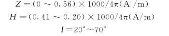 (1)两极处:Z=T=(±0.6~±0.7)×1000/4π(A/m),H=0,I=±90°