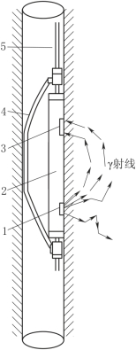 1—γ源;2—铅屏;3—探测器;4—弹簧片;5—电缆