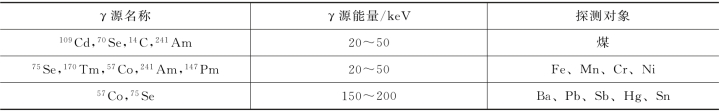 当选用能量较低的γ源,如表10-3所列的γ源,且有选择地测量低能量的γ射线时,这些γ射线穿过岩石以光电效应为主。光电效应吸收系数与γ射线能量的三次方成反比,与原子序数的3~5次方成反比。所以采用低能量的γ源的γ-γ测井,其测井曲线变化反映了岩石的有效原子序数的变化(有效原子序数Z有效=3∑Zi3Pi;Zi为组成岩石的第i种元素的原子序,Pi为第i种元素在岩石中所占的重量百分比)。当岩石中有少量金属矿物时,有效原子序明显增大,所以这种γ-γ测井能探测金属含量很低的金属矿,称其为选择γ-γ测井。