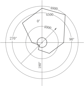 由于指示剂随水流一起流动,因此只能在下游方向才能观测到明显的示踪异常。由各孔测得的γ强度作出读数随方位变化的矢量图(图10-63),则由最低γ读数的孔位指向最高γ读数的孔位方向为地下水的流向。