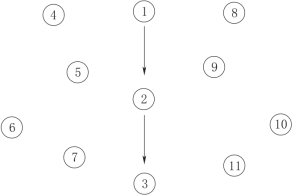 为确定地下水流向、流速、流量等水文参数而进行放射性同位素测井时,一般是先将溶有放射性同位素的泥浆或水溶液注入井孔中,待其随地下水流动后,在附近井孔中测量其γ射线强度。根据附近井孔中所测得的γ曲线,可以确定地下水流向、流速。例如有如图10-64所示井群,在1号孔中投入含有放射性同位素131I化合物的溶液,在周围井孔中测量γ射线强度。若在2号井及3号井孔中发现了γ射线异常,则可确定地下水流向为1→2→3号孔方向。且根据从1号孔投入含131I化合物溶液时刻起,到2号孔中测得131I放射的γ射线时刻止的时间差Δt,以及1号孔到2号孔的距离R,即求得地下水流速(V=R/Δt)。