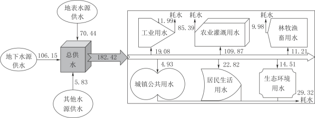 图3.1 2018年河北省水资源开发利用基本情况(单位:亿m3)