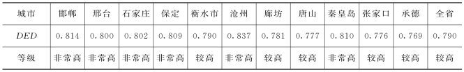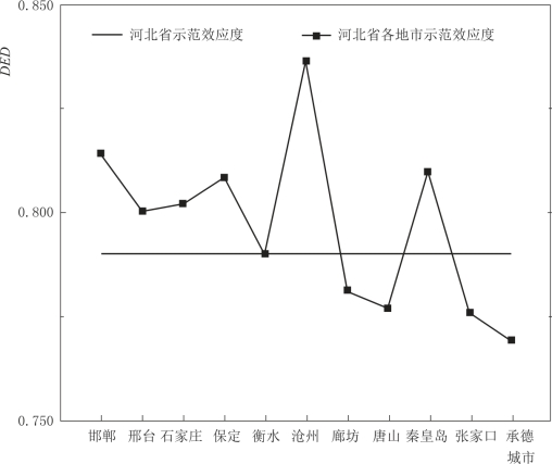 表8.8 河北省及各地市示范效应度(DED)计算结果