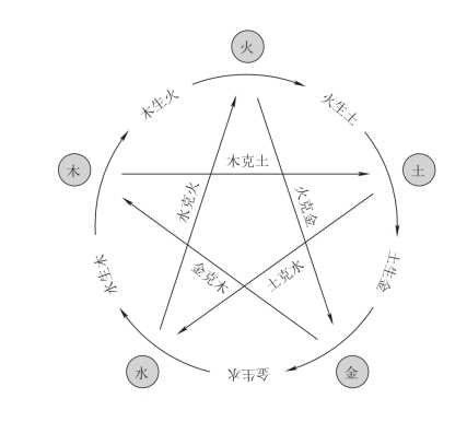 相信“神力”有效的根源来自中国传统的“五行”观念。“五行”是中国古代道家的一种系统观,认为宇宙万物由五种性质的基本事物构成,是为“五行”。“天有五行,水、火、金、木、土,分时化育,以成万物。”在世界观方面,其他民族也有“要素构成论”的观念,如古希腊哲学认为构成世界的四大要素是土、水、气、火;印度哲学认为,世界的基础是物质,物质的元素是“四大”,即地、水、风、火,一切有生命的物类均由“四大”和合而成。不过,与希腊、印度哲学不同的是,中国文化的“五行”不是静态且割裂的单独存在的元素,而是彼此相生又相克,这种动态的联系构成生生不息、循环往复的大系统(见下图)。