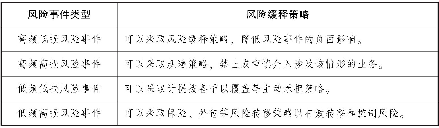 2.操作风险管理:操作风险事件根据发生频率及损失程度划分为高频低损风险事件、高频高损风险事件、低频低损风险事件和低频高损风险事件四种情形,信托公司应当根据不同的情形采取不同的应对措施: