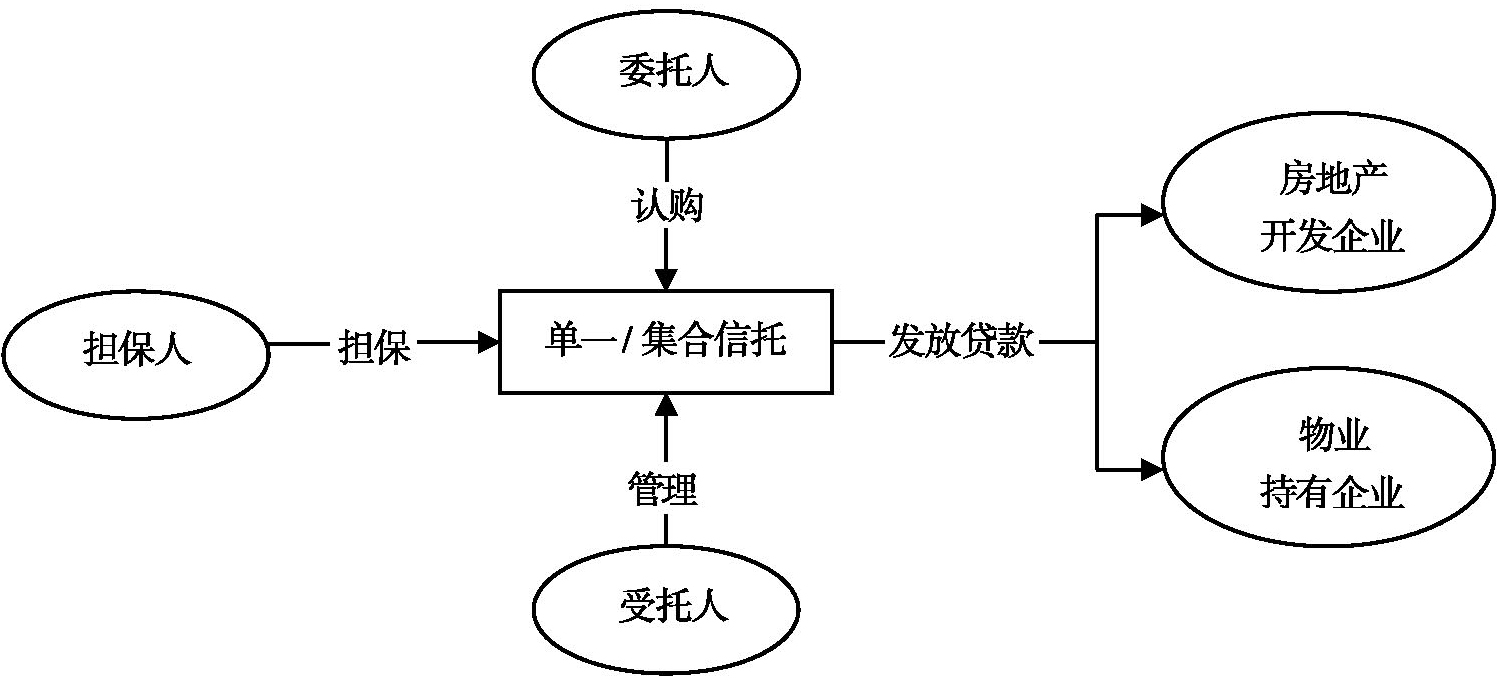 房地产信托贷款业务是房地产信托业务的基本业务模式,其交易结构和操作流程较为简单,属于房地产信托业务中风险较低的一种业务模式。房地产信托贷款业务可以分为开发贷款业务和经营性物业贷款业务。开发贷款业务主要是向房地产开发企业正在开发的房地产项目发放贷款,主要用于该项目的开发建设,一般以该项目的销售收入作为还款来源;经营性物业贷款主要是向经营性物业持有企业发放贷款,主要用于该物业日常经营维护等所需流动资金,一般以该经营性物业的经营收益作为还款来源。