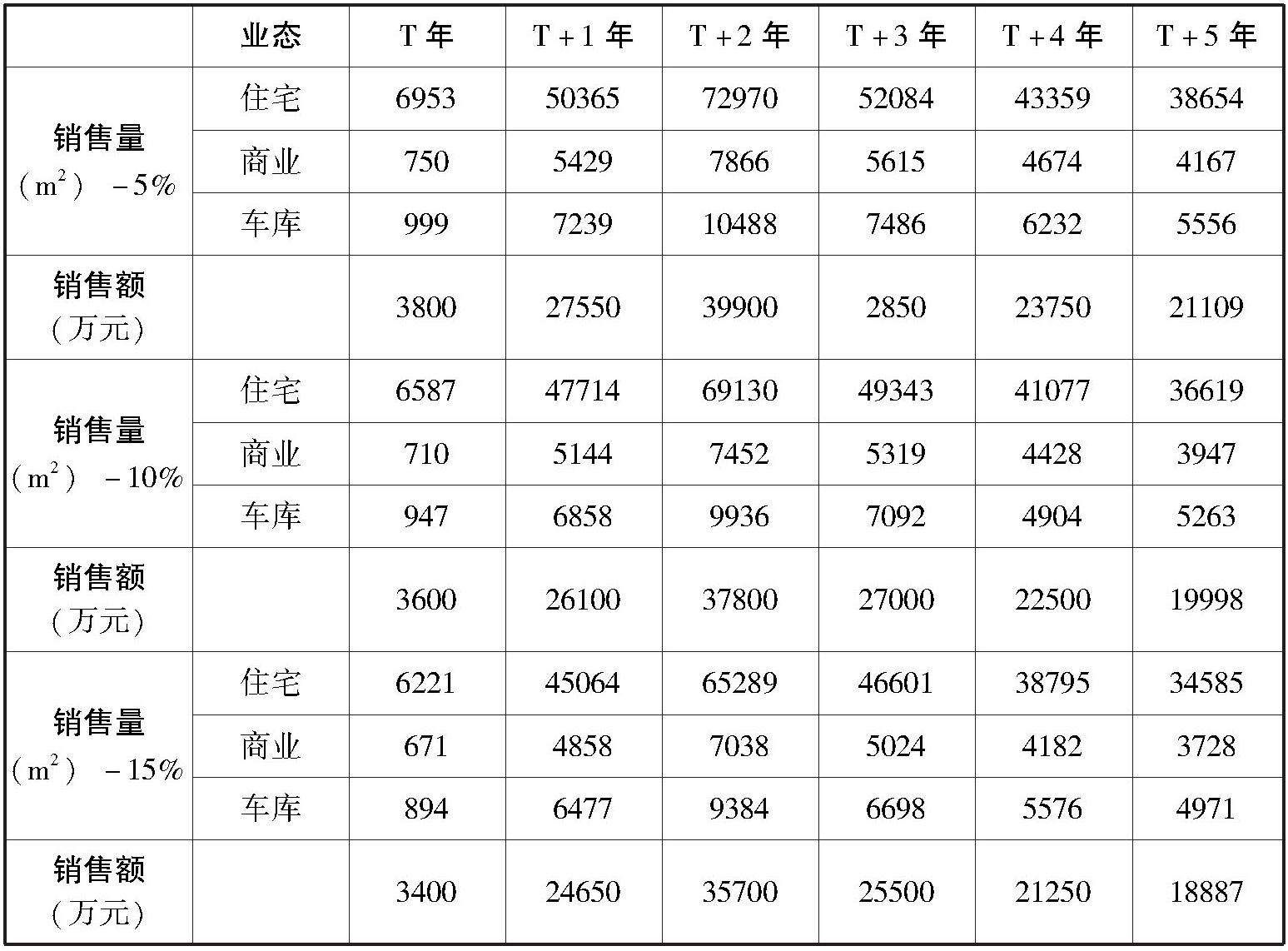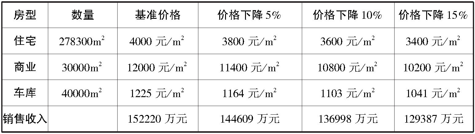 (1)可以结合项目总投资概算,根据销售价格下降幅度进行项目盈亏平衡分析。比如,该项目总投资概算为130000万元,则销售价格下降15%即是项目盈亏平衡点,如果销售价格下降幅度超过15%,则该项目将会出现亏损。