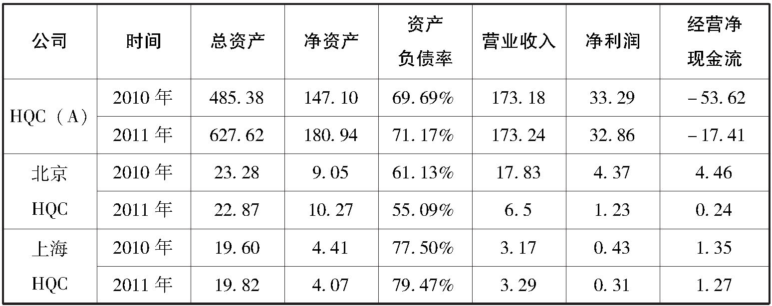 根据LHZX评估有限公司对HQC集团公司信用状况进行综合分析和评估,确定HQC集团公司主体长期信用等级为AAA级。2011年年末,HQC集团资产总额846.41亿元,负债总额614.63亿元,归属母公司所有者权益合计109.31亿元。2011年度,HQC集团实现营业收入335.53亿元,净利润36.02亿元,归属母公司所有者的净利润20.77亿元,主营业务收入主要来源于电子业务收入、房地产业务收入及文化旅游综合业务收入。2011年经营活动产生的现金流量净额为-37.00亿元。