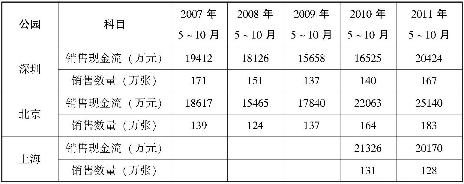 2011年深圳、北京、上海三家HLG的入园凭证的销售收入产生的现金流合计约为9.33亿元,其中5~10月合计约为6.57亿元;2013~2017年每年5~10月分别预计可产生销售现金流6.92亿元、7.14亿元、7.19亿元、7.29亿元和7.43亿元。所选择的基础资产所属的三家HLG的区域分布较为分散,并且均为相应区域最发达的中心城市,可以在一定程度上分散基础资产所属主题公园的经营风险。