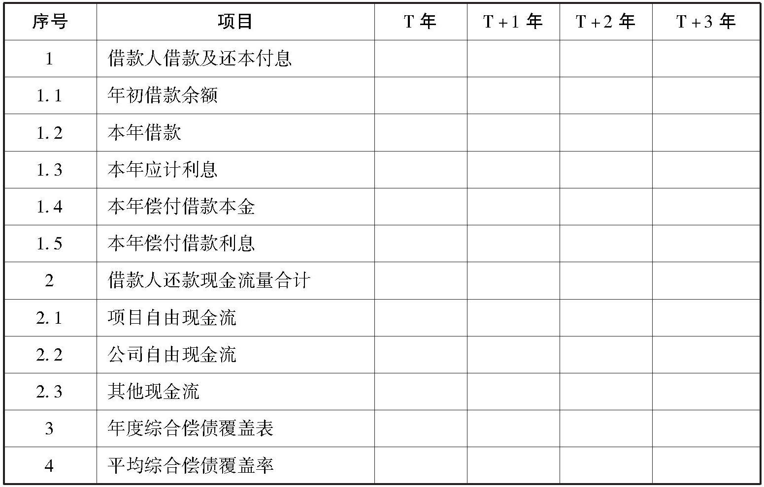 平均综合偿债覆盖率=还款期内借款人还款现金流量合计额/还款期内还本付息合计额×100%