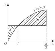 (1)t取何值时,右图中阴影部分的面积S1与S2之和S=S1+S2最小?