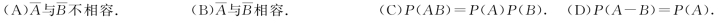 (4)设A和B是任意两个概率不为零的互不相容事件,则下列结论中肯定正确的是