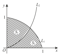 六、(本题满分5分)假设曲线L 1:y=1-x 2(0≤x≤1),x轴和y轴所围区域被曲线L 2:y=ax 2分为面积相等的两部分(如图),其中a是大于零的常数,试确定a的值.