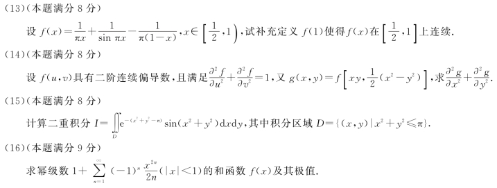 (4)设n维向量α=(a,0,…,0,a)T,a<0,E为n阶单位矩阵,矩阵,其中A的逆矩阵为B,则a=_________.