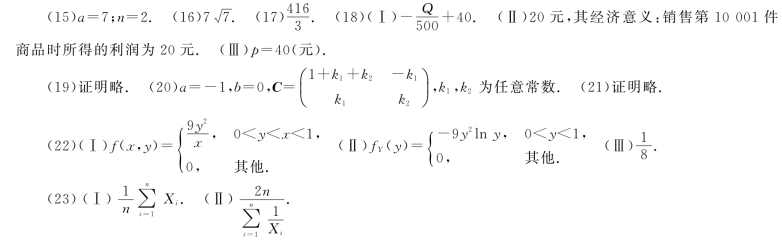 (9)-2. (10)2(1-ln2). (11)ln2. (12),其中C1,C2为任意常数. (13)-1. (14)2e2.