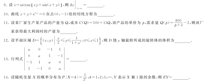 2020年全国硕士研究生招生考试数学三试题