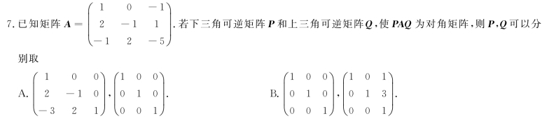 设矩阵仅有两个不同的特征值.若A相似于对角矩阵,求a,b的值,并求可逆矩阵P,使P-1AP为对角矩阵.