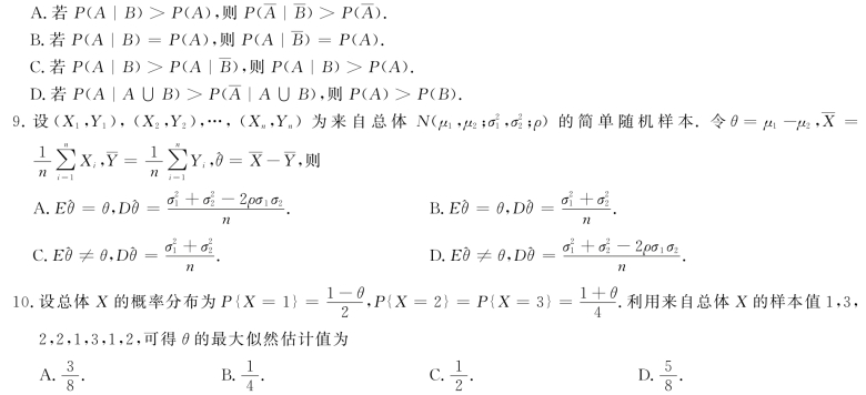 8.设A,B为随机事件,且0<P(B)<1.下列命题中为假命题的是