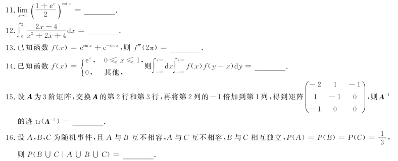 2022年全国硕士研究生招生考试数学三试题