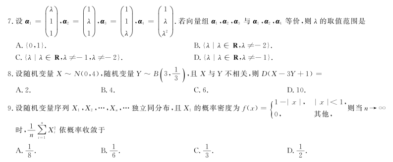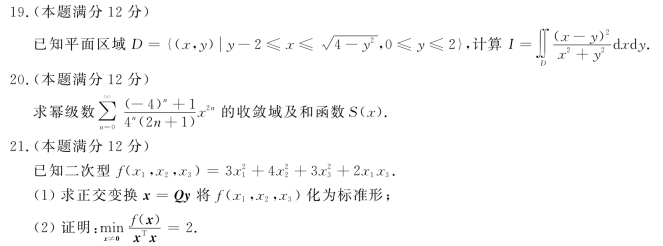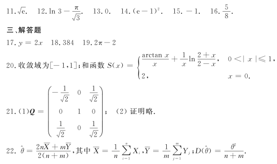 22.(本题满分12分)设X1,X2,…,Xn为来自均值为θ的指数分布总体的简单随机样本,Y1,Y2,…,Ym为来自均值为2θ的指数分布总体的简单随机样本,且两样本相互独立,其中θ(θ>0)是未知参数.利用样本X1,X2,…,Xn,Y1,Y2,…,Ym,求θ的最大似然估计量,并求D(