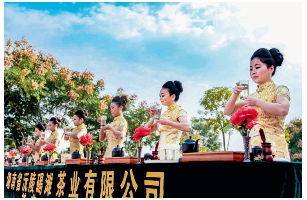 同时,沅陵积极开展地方文化和碣滩茶文化的挖掘、整理、丰富、创新与发展,支持各类茶诗、茶联、茶谚、茶歌、茶舞、茶俗以及名人赞誉、获奖情况等的收集、整理,出版、发行有关碣滩茶文化的宣传报道、相关影视作品;并且筹措建设一支沅陵碣滩茶文化艺术团,打造一个富有地方风情的茶文化剧目和一个碣滩茶茶艺,利用茶叶高峰会、茶叶博览会、茶文化旅游节、龙舟节等活动和出访机会,在县内、省内、国内配合开展沅陵碣滩茶宣传推介活动。大力挖掘碣滩茶文化,目前已经出版了《茶韵天香》《无射山在沅陵》等有关碣滩茶文化的书籍。除此之外,在全国各地开设大茶网沅陵碣滩茶体验店,依托大茶网电商平台开展在线上线下020模式销售,目前已在广东、天津、重庆、四川、黑龙江、内蒙古、辽宁、河北、河南、江苏、江西、安徽等省市区开设碣滩茶体验店400多家。