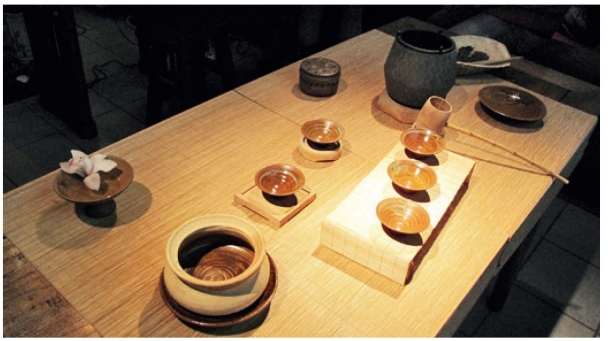 局部照明是指为照亮某些需要强调的部位而设置的照明,它能使室内空间层次发生变化,增强环境气氛的表现力,因此在茶席布置时非常重要。例如在泡茶台正上方的屋顶上安装一盏射灯,开灯时,灯光恰好投射在茶盘中央,人们的目光会自然而然地聚焦到射灯所照亮的范围,观赏茶杯中被射灯照得格外艳丽璀璨的茶汤,以及表演者的优美手势。