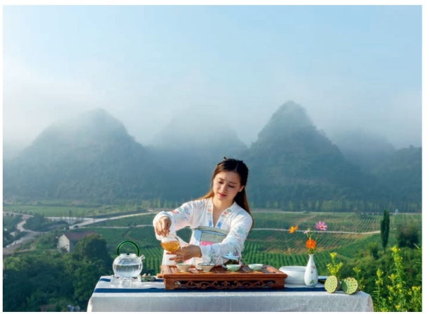 雅燕飞觞,清谈挥座。陆羽称茶为“南方之嘉木”,把茶饼称“月团”,黄庭坚把茶称“云腴”,苏东坡喻茶为“佳人”。茶形之美。尽在见仁见智之间。碣滩茶,条匀紧实,银毫满披,“碧峰青天树纷纷,积雪初疑是白云”。倾国倾城的唐睿宗李旦的妃子胡凤娇喜爱的碣滩茶,如今已成为国家地理标志保护产品、中国乃至国际名茶,深得饮茶者青睐。