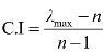 一致性检验是针对判断矩阵A 而言的,检验方法是两个一致性指标C.I 和C.R。已知判断矩阵A 是n×n的矩阵,最大特征根为λmax。