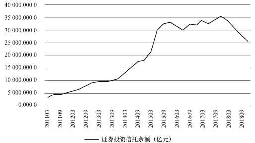 由图5.6 可知,北京市平均年化综合信托报酬率震荡明显,在2013年3月达到第一个高点0.85%,在2016年12月达到第二个高点为0.73%,且之后呈现一个明显的下坡趋势。北京市年化综合实际收益率前期波动幅度不大,波动高峰基本处于中后期,2015年12月与2017年12月为两个峰值,分别为13.96%和9.42%,最后到2018年出现一个下降趋势。由图5.7 可知,北京市证券投资信托余额整体呈现快速增长的明显趋势,在2017年最后一个季度达到最高点为35 785.96 亿元,但是之后2018年出现了一个快速下降的趋势。