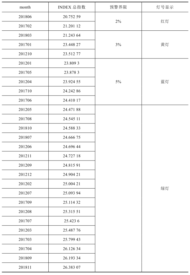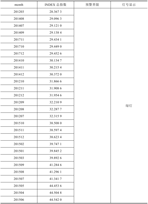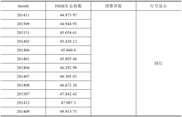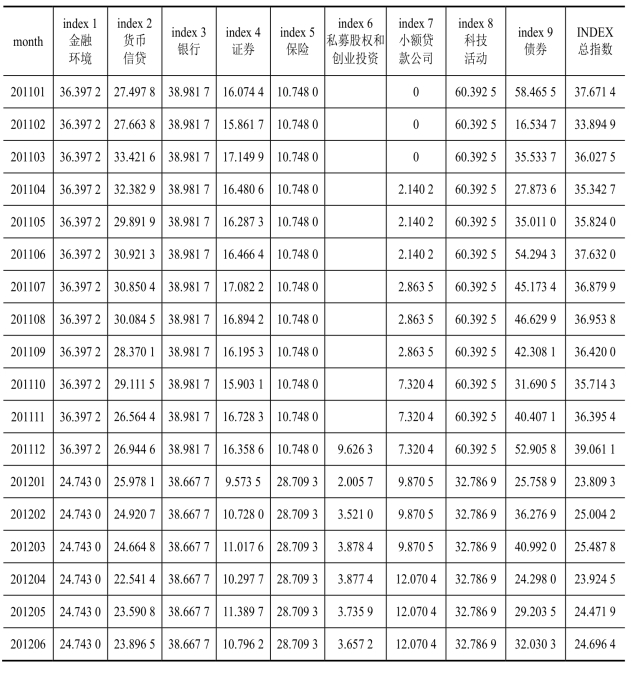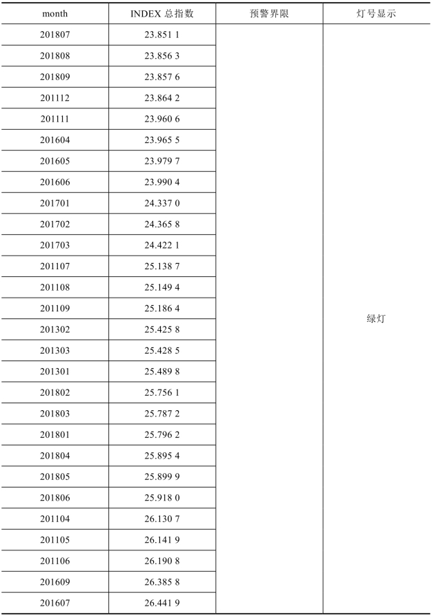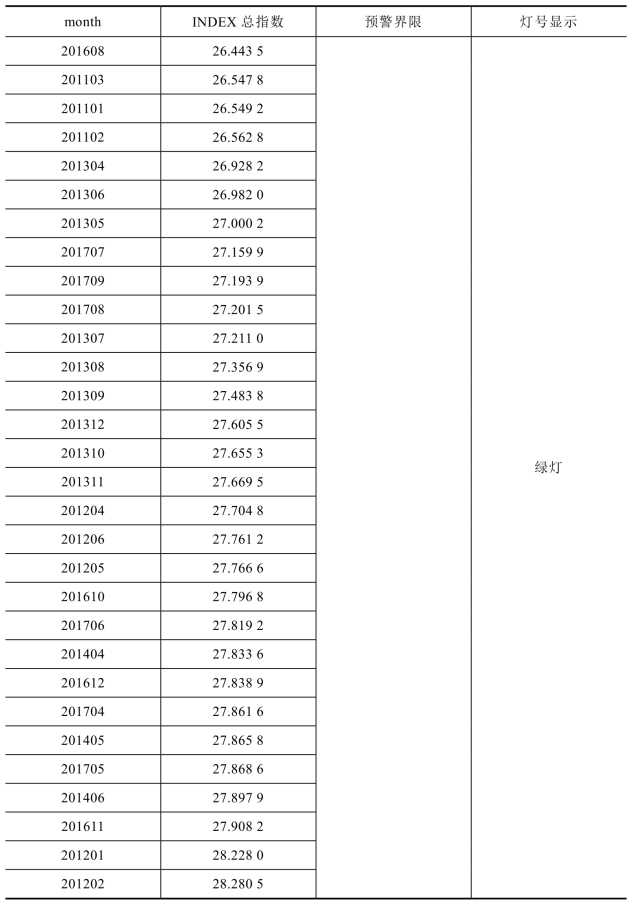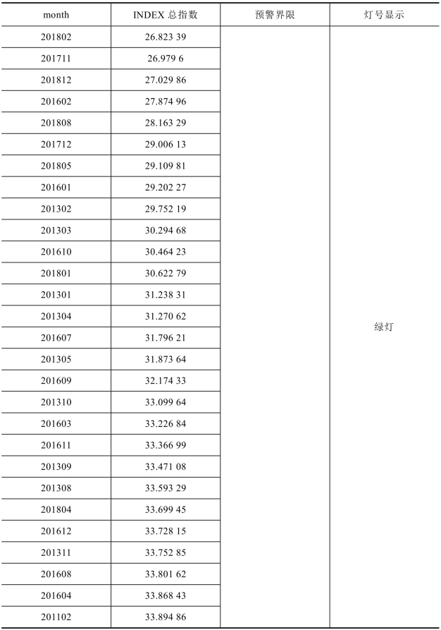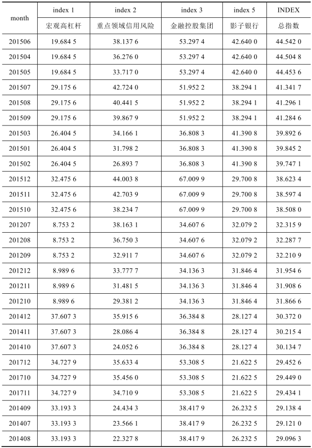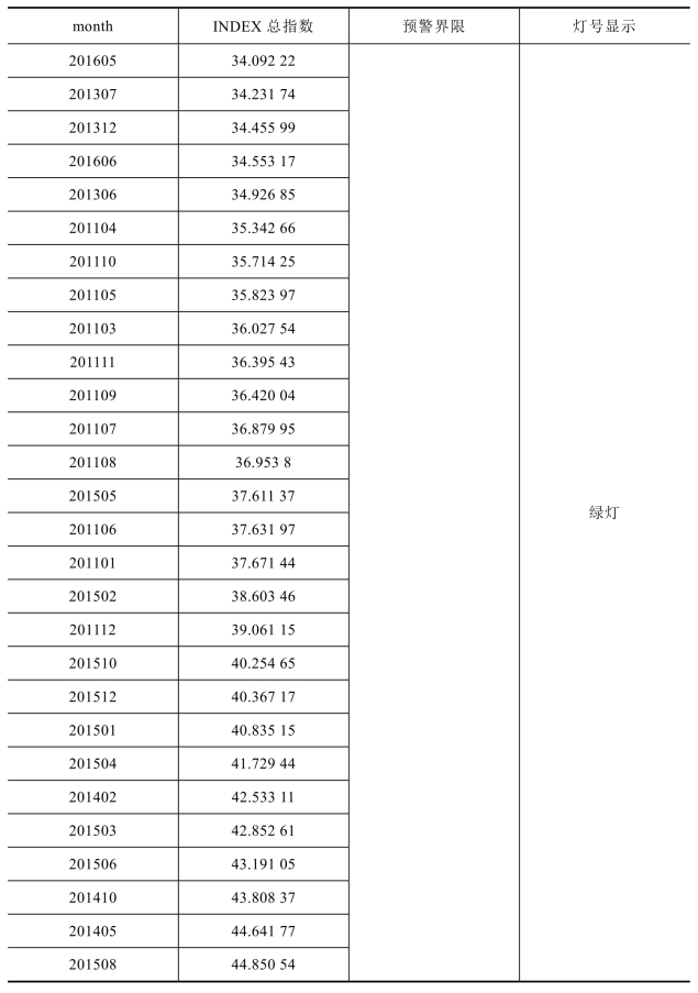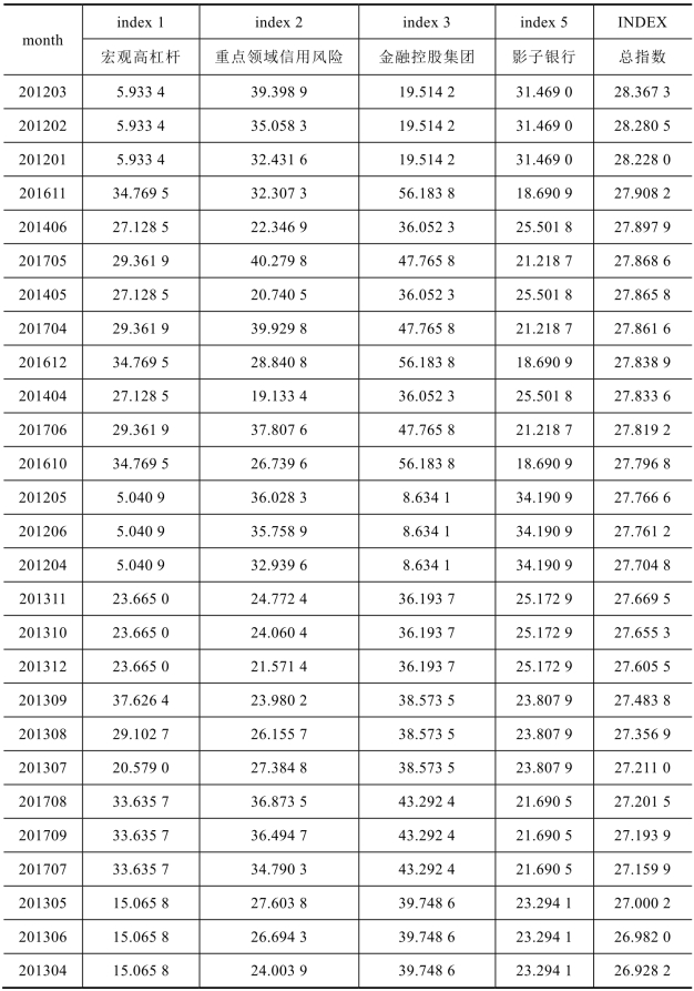 表4.3 北京市金融风险预警与防范系统指标综合评分