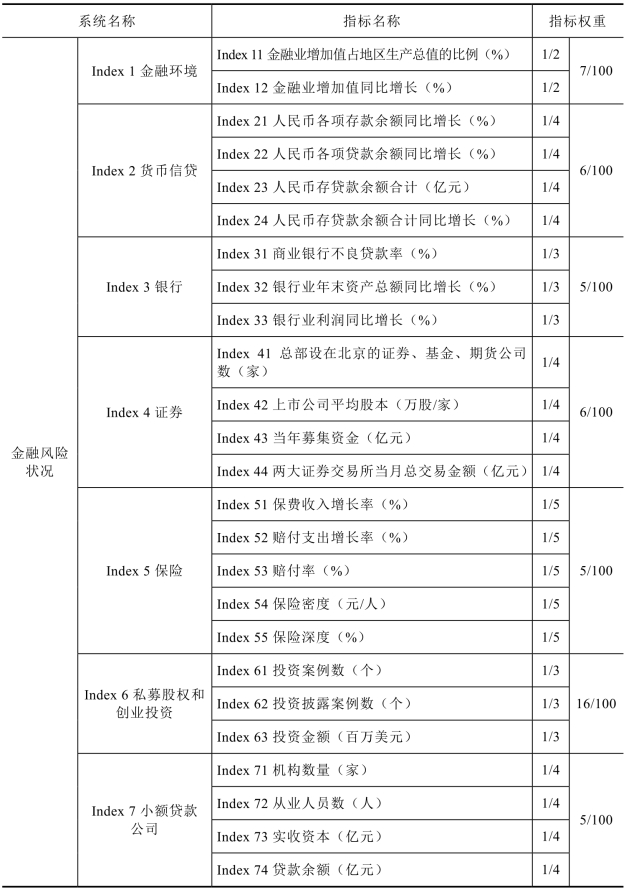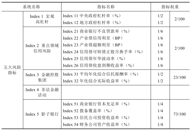 表5.2 北京市五大重点监管金融风险预警与防范系统指标权重