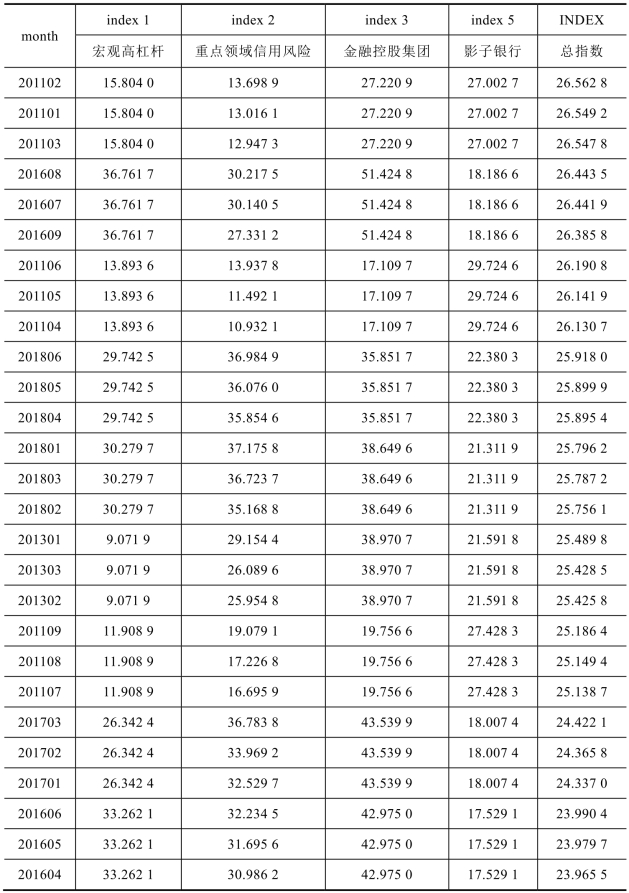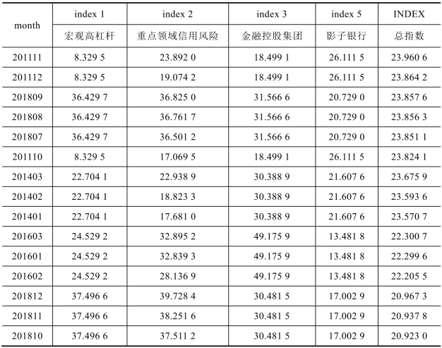 表5.3 北京市五大重点监管金融风险预警与防范系统指标综合评分