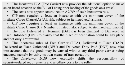 Table 5-1 Changes of Incoterms 2020 over Incoterms 2010