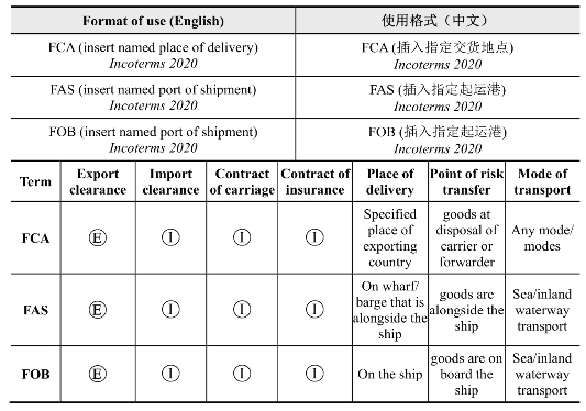 Table 5-4 The “F”Group—FCA,FAS,FOB F组——货交承运人、船边交货、船上交货