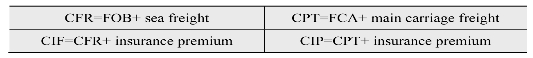 Sometimes,you quote in one Incoterms rule,such as FOB,but the importer prefers another,such as CFR,CIF or any other of the 11 Incoterms rules.At other times,you want to initiate an adjustment with your price terms to obtain an order.In those cases,you need to convert from one rule to another.For that reason,you need to know the relationship between these rules and how to convert between them.Besides,insurance premium is often included in a price quotation,and sometimes commission,too,which could make the conversion alittle bit messy.Table 5-9 displays the formula used for converting between several Incoterms rules.