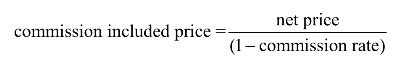 Suppose you are a manufacturer,and have concluded a deal with the importer through a trading company as the middleman.In line with trade conventions,you need to pay a commission to the trading company for its service in the deal,the amount of which may or may not be indicated in the price quotation,depending on the circumstances.Should the importer ask it be indicated,your price quotation could be something like this:“USD 1000/MT,CFRC2,Seattle,USA”.Here,“C”stands for“commission”,and “C2”tells the importer that the commission payable to the middleman is 2% of the FOB price for each metric ton.From your perspective,you need to do a calculation that starts with your net price(the commission exclusive price)and the commission rate required by the middle man to arrive at the commission included price for quoting to the importer.The following formula shows you the procedures.
