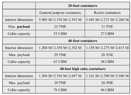 Before you ship goods via containers,you must know the common sizes of containers and important terminologies in container shipping(see Figure 6-1 and Table 6-2).