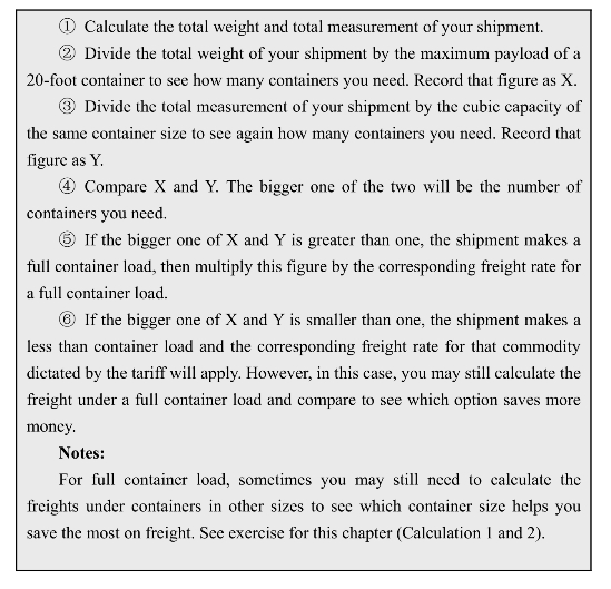 Table 6-3 Procedures for Calculating Basic Freight for Container Shipping