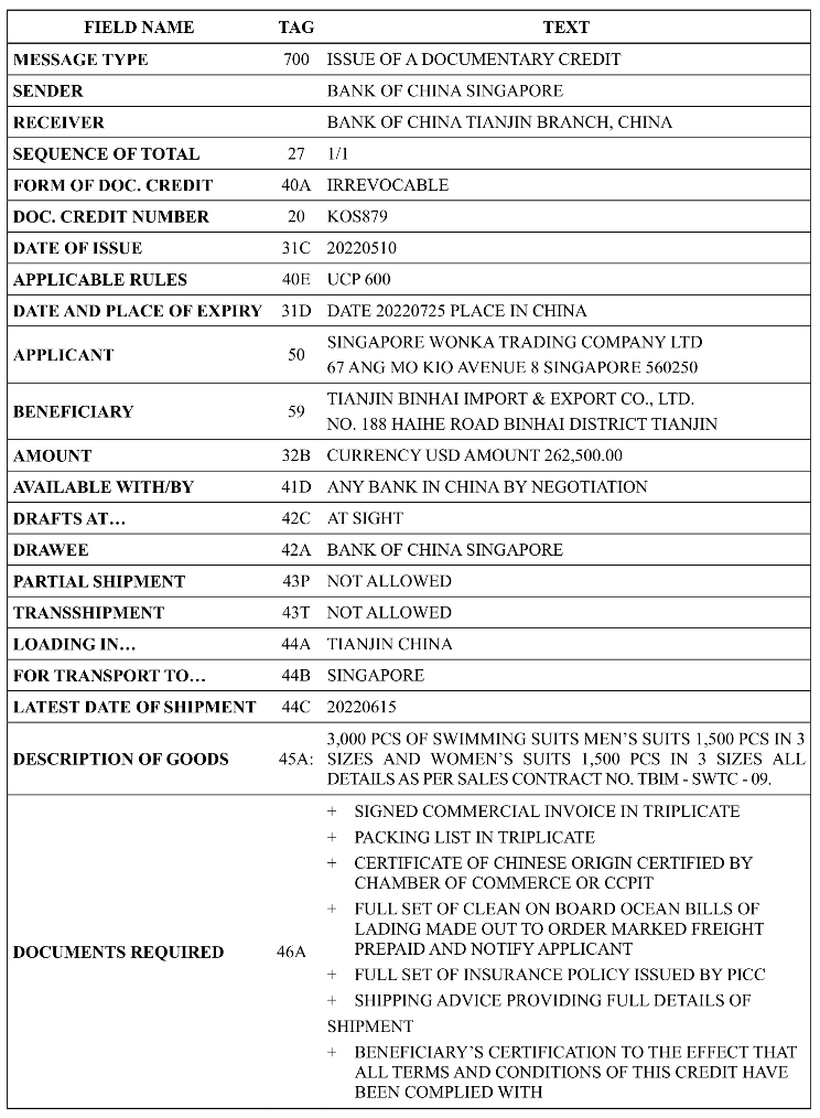 Figure 13-3 A Sample Letter of Credit