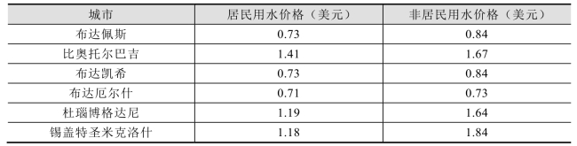 表4-6 匈牙利部分城市用水价格