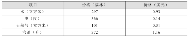 表4-5 2020年匈牙利生活用水、电、气、油价格